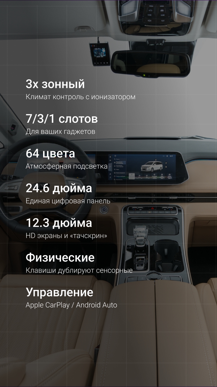 | Атмосферная подсветка интерьера (64 цвета) | ✔ |