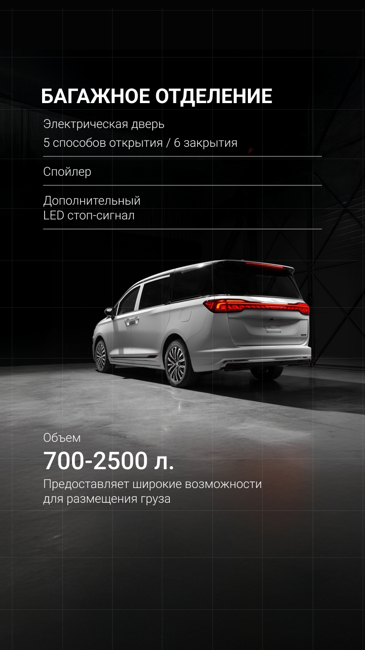 | Электрический люк (2 режима открытия) с защитой от защемления | ✔ |